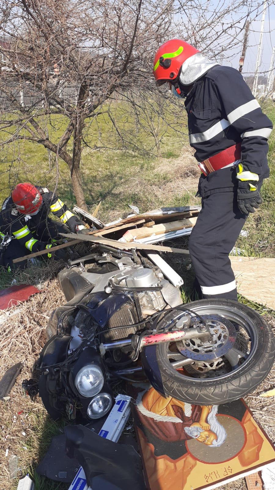 Un motociclist a fost grav rănit, miercuri dimineaţa, după ce a intrat în coliziune cu un autoturism, pe drumul naţional DN 7C, în localitatea Merişani.