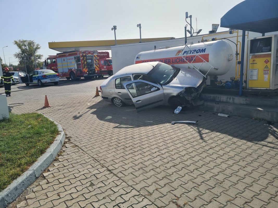 Un recipient GPL dintr-un PECo din Piteşti, situat în zona Podul Viilor, a fost lovit de un autoturism, în urma unui accident rutier.