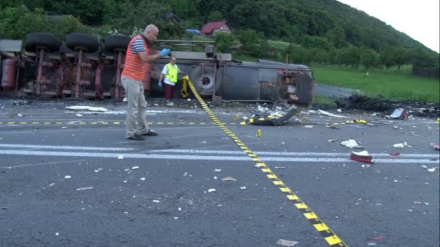 Cinci persoane au fost rănite, luni dimineaţă, după ce trei maşini şi un TIR s-au ciocnit pe DN 11, din cauza unei depăşiri neregulamentare. Traficul în zona localităţii Helegiu este blocat.