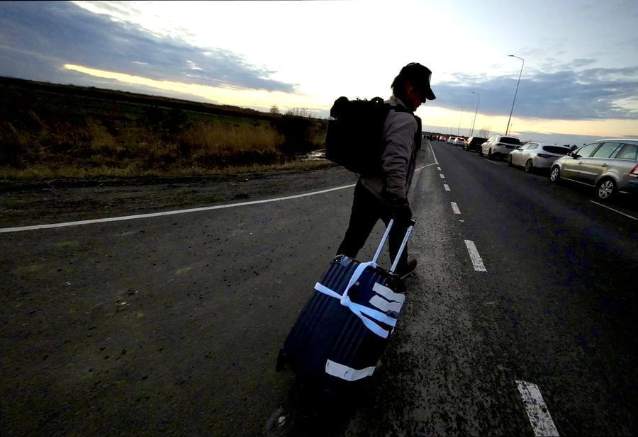 Myself & two colleagues walked miles to the Polish border after abandoning our car on the side of the road. Almost all the cars in this photo carry women & children only, most without any sign of luggage, and a car their only possession of value. pic.twitter.com/XSwCDgYVSH