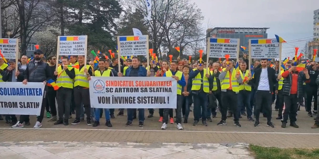 Aproximativ 500 de angajaţi ai TMK Artrom Slatina, dar şi de la alte fabrici de pe platforma industrială, au protestat, în această după-amiază, în faţa Prefecturii Olt. Oamenii se tem că vor rămâne fără locuri de muncă, după ce conturile societăţii au fost blocate, ca urmare a sancţiunilor impuse Rusiei. Potrivit liderilor de sindicat, niciun ban care a intrat în conturile companiei, începând cu data de 10 martie 2022, nu poate fi folosit.