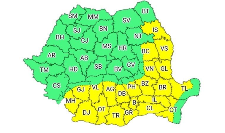 Administrația Națională de Meteorologie a emis o atenționare meteorologică cod galben, valabilă în zilele de 2 și 3 iulie, fenomenele preconizate fiind caniculă și disconfort termic.