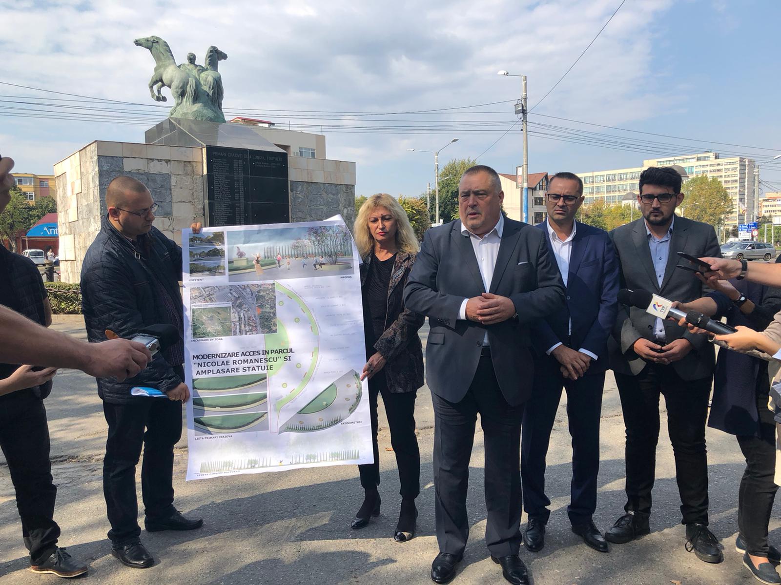 „Dăm ordinul de începere a lucrărilor de la statuia de la Parcul Romanescu, în prezența constructorului și proiectantului. Chiar dacă, efectiv, ordinul își produce efectele începând cu data de 11 octombrie, pentru că este un termen din moment ce se plătește taxa la ISC și până când începe lucrarea, dar am vrut să arătăm că toate lucrurile sunt îndeplinite, la această oră, inclusiv autorizația de construcție și acest ordin de începere a lucrărilor. Pe 11 octombrie, încep efectiv și lucrările”, a menționat Mihail Genoiu, primarul Craiovei.