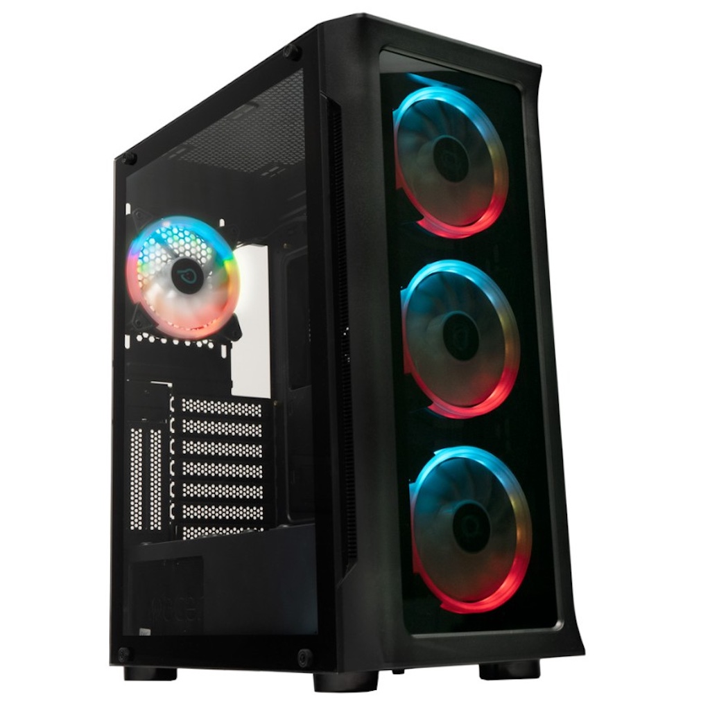 - SHIELD mizează pe un look premium, cu sticlă securizată atât frontal, cât și lateral, completată de iluminare ARGB controlabilă, perfectă pentru setup-uri elegante;