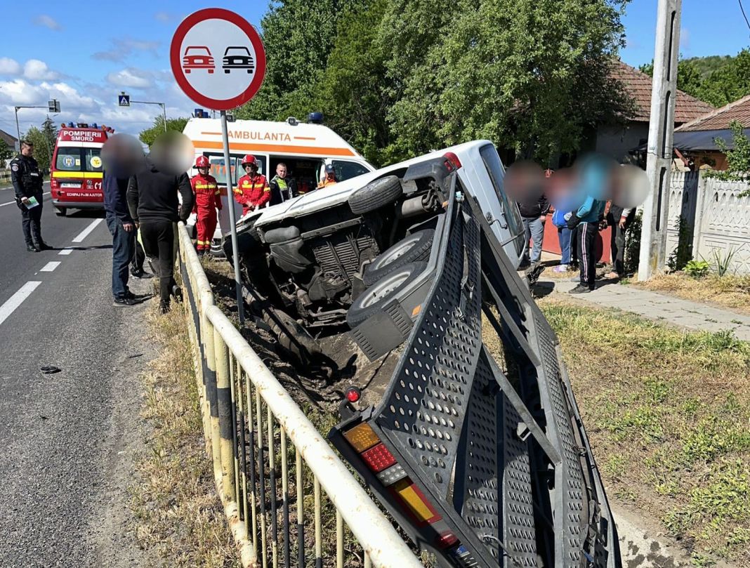 În accident a fost implicat un singur autovehicul, un microbuz, care a părăsit partea carosabilă.