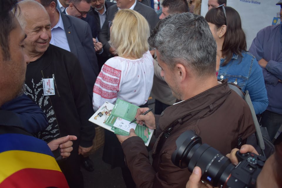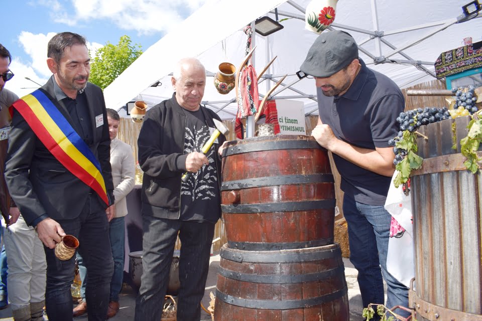 Invitaţii au trecut în revistă târgul meşterilor populari, iar înainte de spectacolul oferit de ansamblurile etniilor din România, George Mihăiţă şi Emil Moţ, au dat cep butoiului cu must, de la Mustăria „La căţaua leşinată”.