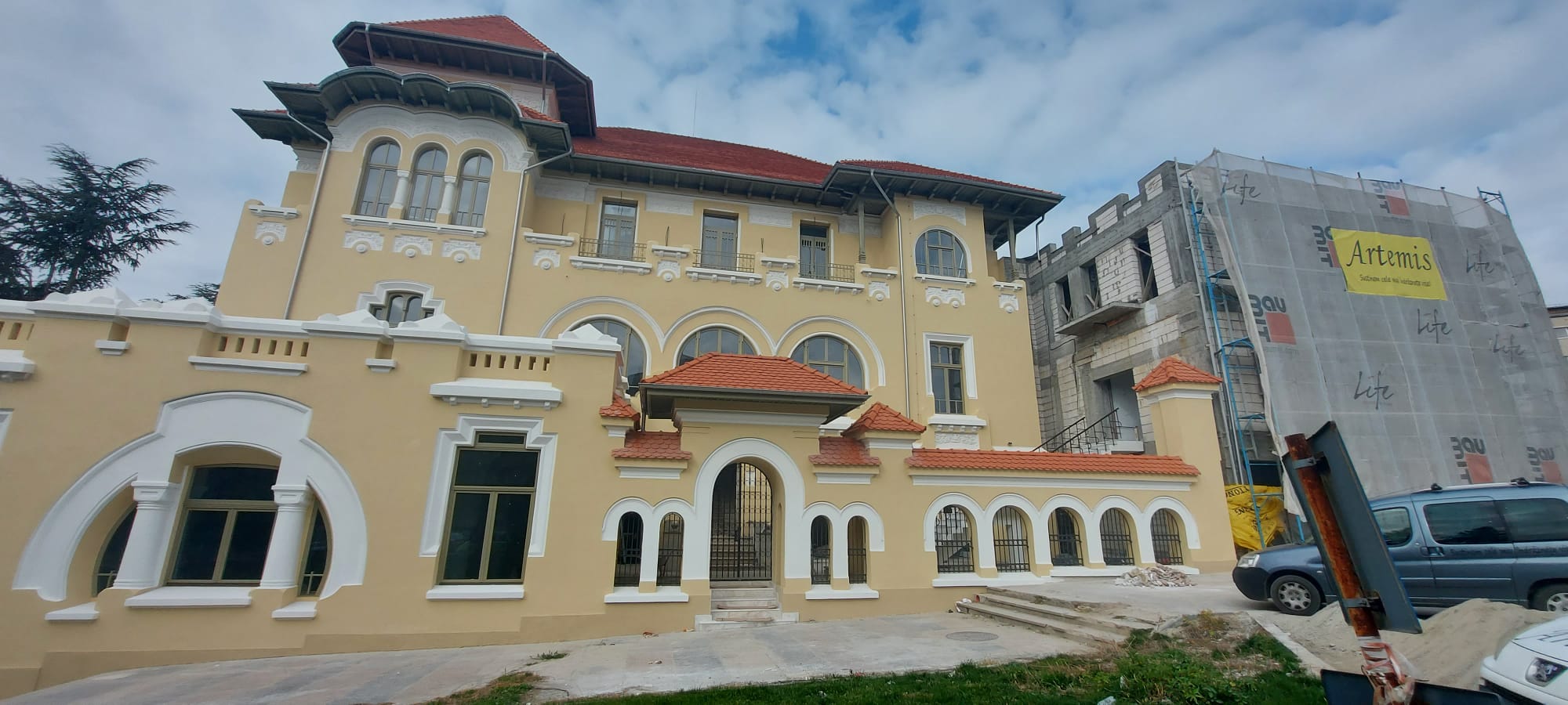 „Acum, stadiul lucrărilor este bun. Este o lucrare care se face greu pentru că e mare şi se face pe bani puţini. Este un veşnic dialog între constructor şi CNI, astfel încât să poată să iasă lucrarea şi nici constructorul să nu aducă bani de acasă. Casa este salvată, se lucrează la interioare, la finsaje”, a declarat Sever Mitrache.