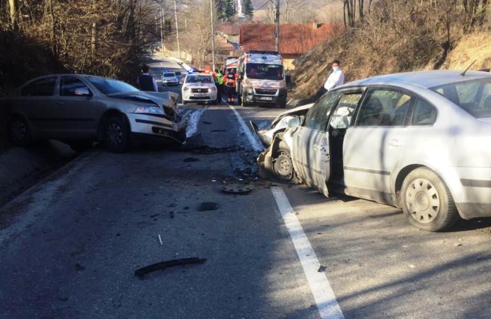 Două autoturisme s-au izbit frontal, miercuri, pe un drum comunal din comuna Păuşeşti Otăsău din judeţul Vâlcea, două persoane fiind rănite.