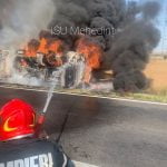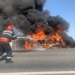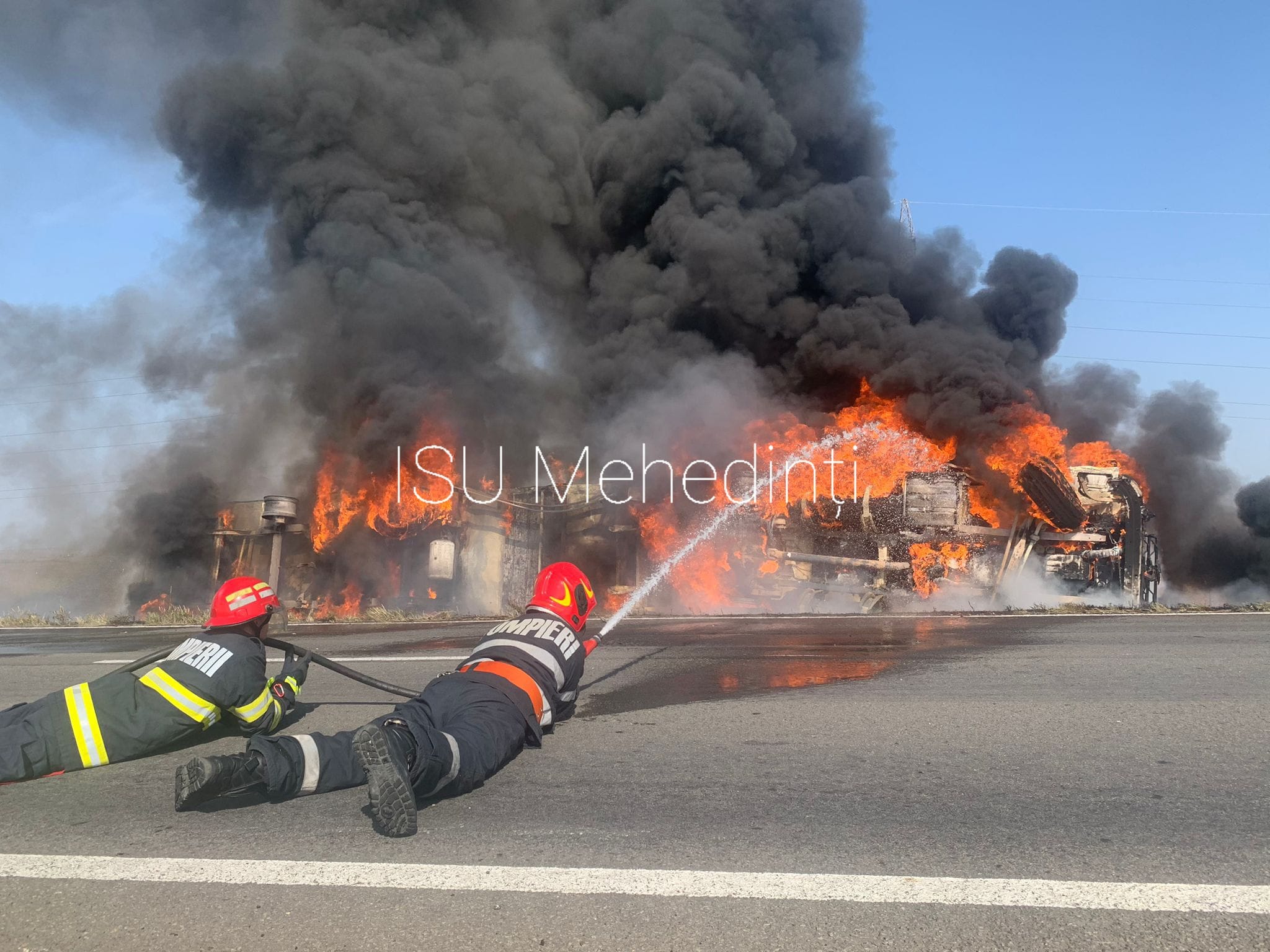 „La sosirea pompierilor, incendiul se manifesta generalizat la întreg autotrenul încărcat cu produse alimentare. Aceștia au localizat și stins incendiul în limitele găsite. Până la sosirea forțelor de intervenție, șoferul se autoevacuase. Acesta a primit îngrijiri medicale de la echipajul SMURD la locul evenimentul, refuzând transportul la spital.
