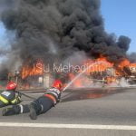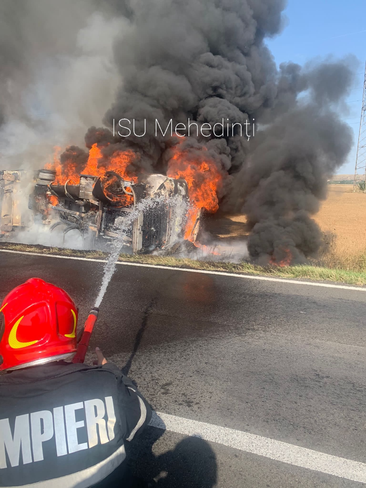 Un incendiu a izbucnit ,vineri după-amiază, la un autotren pe drumul național DN 56 A, în județul Mehedinți.