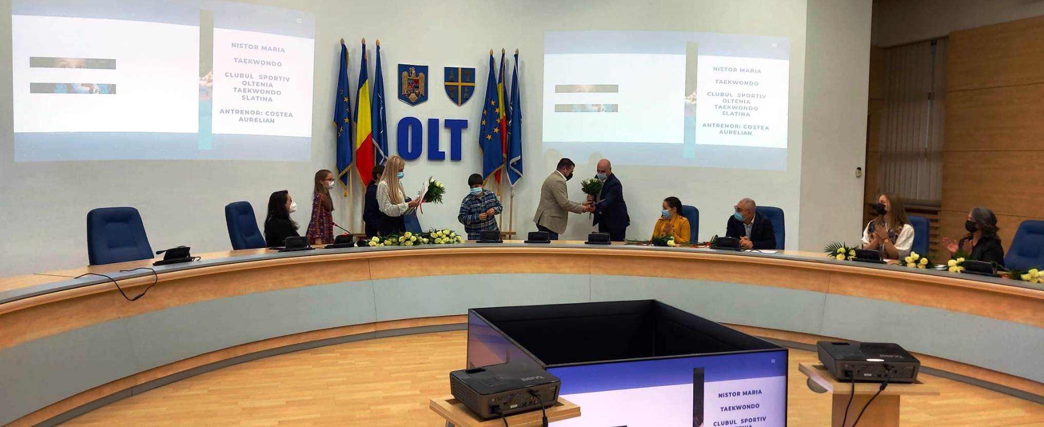 Sportivii şi antrenorii lor, care au obţinut rezultate remarcabile la competiţiile sportive din acest an, au fost premiaţi, miercuri, de Consiliul Judeţean, în cadrul unei ceremonii restrânse desfăşurate la sediul instituţiei.