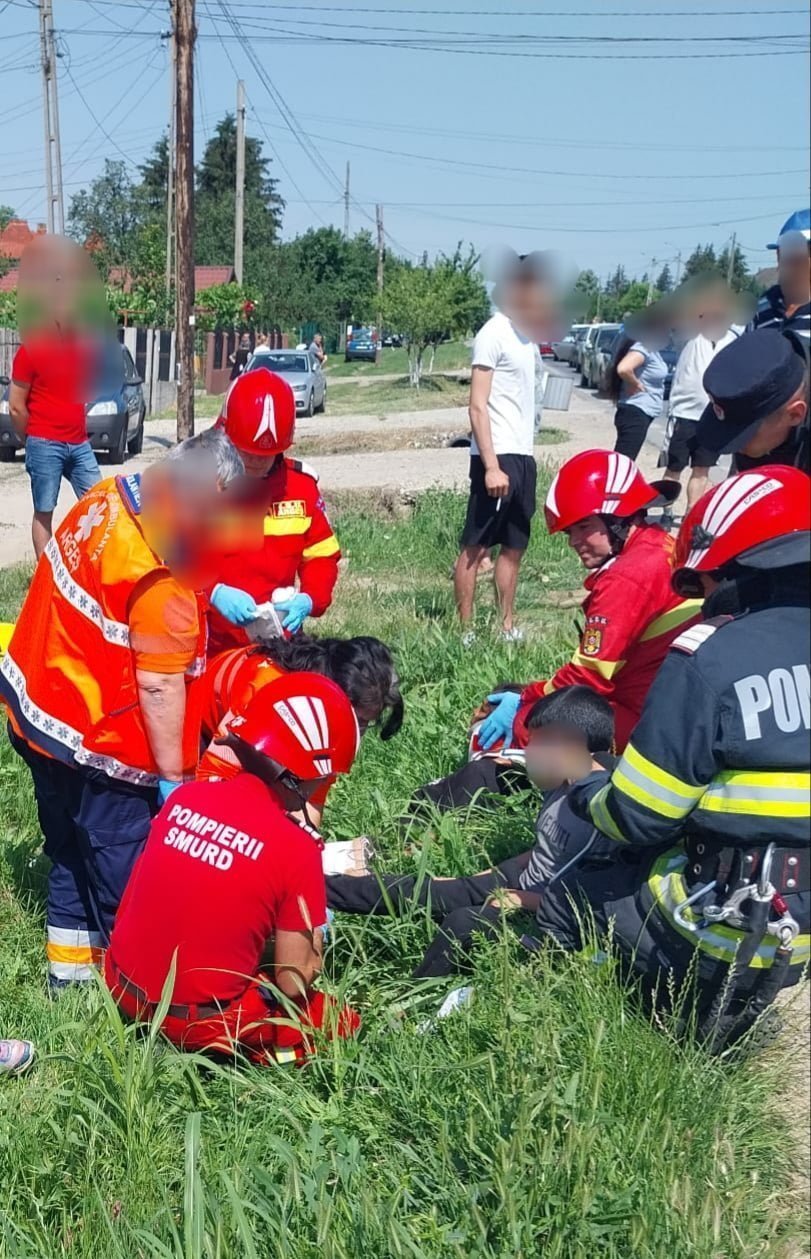 „Echipajele medicale monitorizează trei victime, o persoană de sex feminin, în vârstă de aproximativ 23 de ani și doi copii cu vârstele aproximativ de 8, respectiv 11 ani.