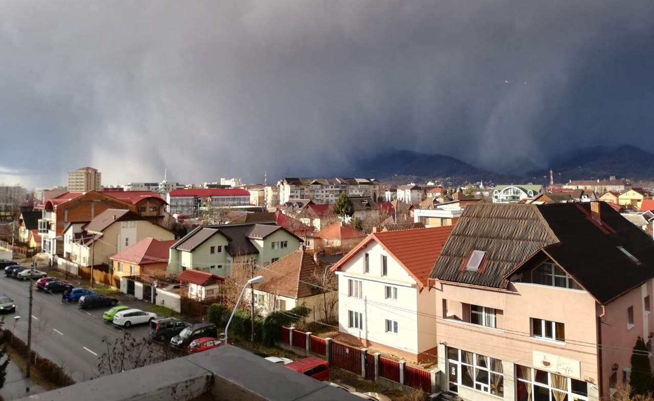 Pe imaginile filmate de un localnic se poate observa cum furtuna Ciara se abate asupra municipiului cu rafale violente, iar în doar câteva secunde Baia Mare trece de la o vreme însorită de iarnă la haos.