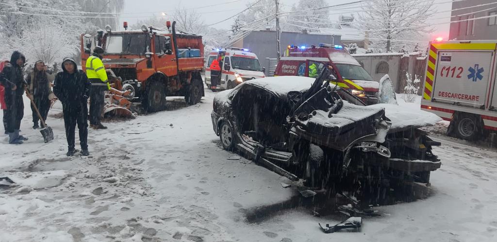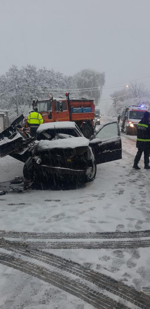 Impact între o maşină şi un utilaj de deszăpezire, în Dolj. O femeie a murit