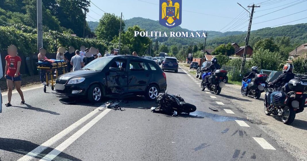 Evenimentul rutier s-a soldat cu rănirea conducătorului motocicletei și a unui pasager din autoturism, fiind vorba de o femeie de 50 de ani.