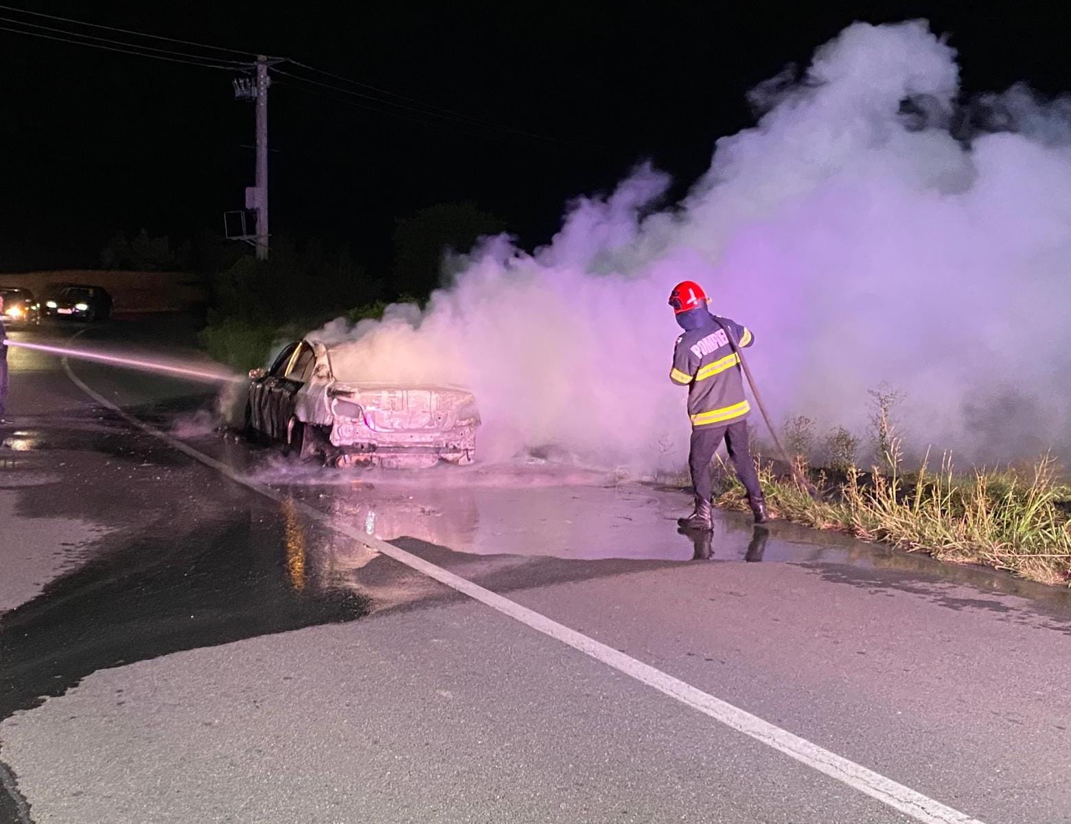 Un autoturism a fost distrus de un incendiu, noaptea trecută, în comuna Vâlcele din judeţul Olt.