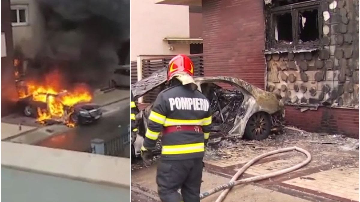 Un autoturism de lux, marca Mercedes, a luat foc luni dimineață, în Cartierul Francez, din București. Flăcările au fost urmate de o explozie, iar incendiul s-a extins și a afectat fațada blocului lângă care era parcată mașina.