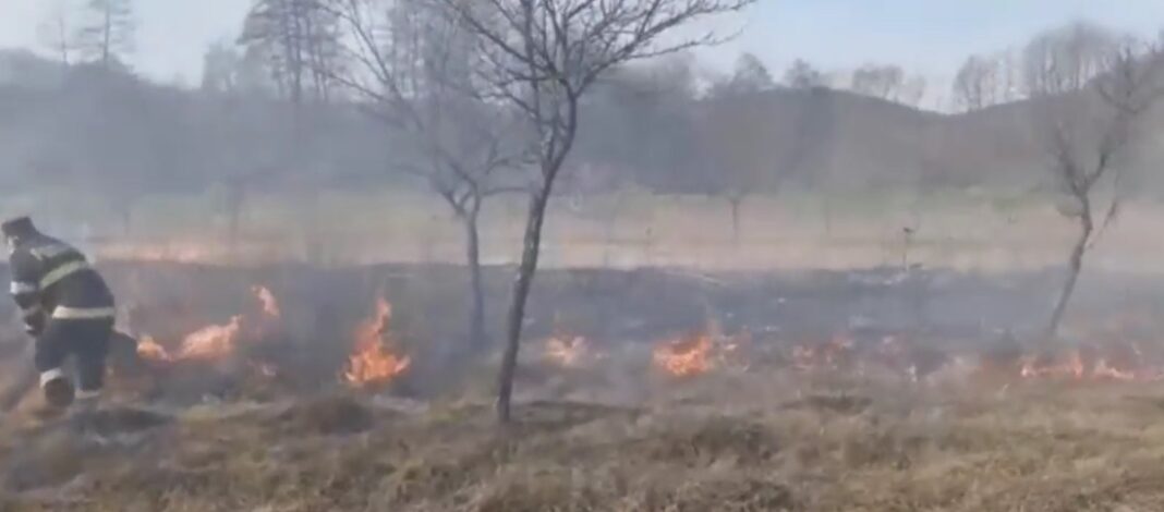Totodată, în localitatea Merișani, tot în judeţul Arge, a izbucnit un incendiu la vegetația uscată.