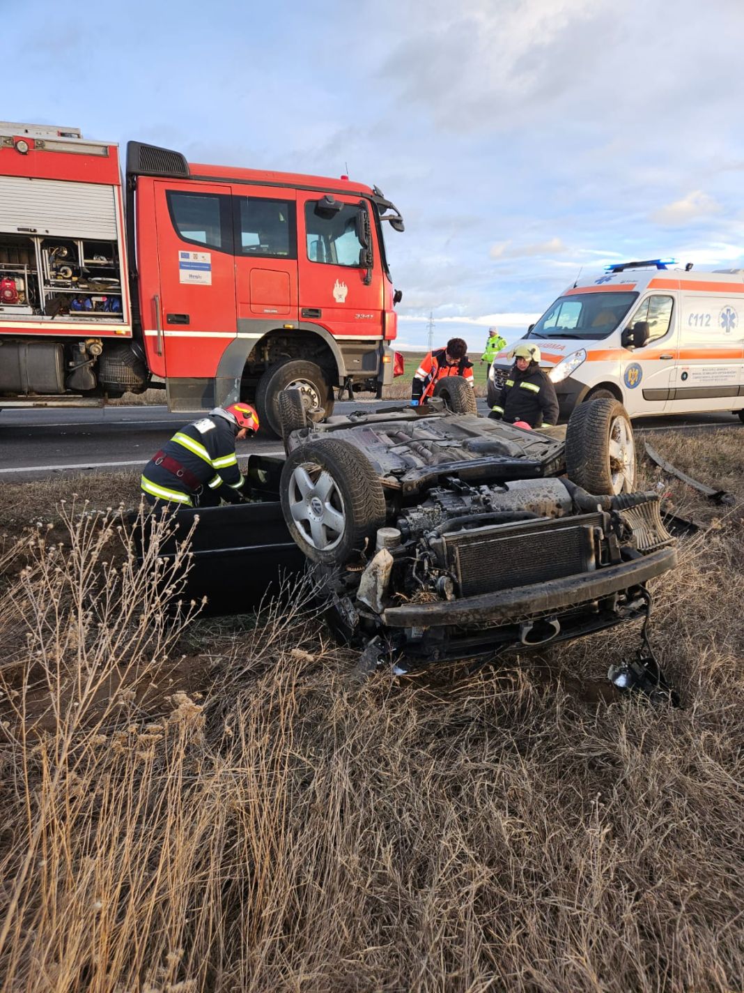 Un autoturism s-a răsturnat, sâmbătă, în localitatea Recea din Mehedinţi, şoferul rămânând blocat în interiorul maşinii.