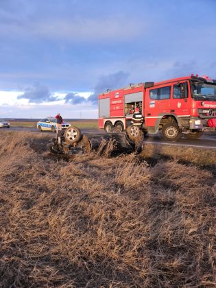 În urma accidentului, în care un autoturism s-a răsturnat părăsind partea carosabilă, șoferul a rămas blocat și a fost nevoie de intervenția echipajului de descarcerare pentru extragerea acestuia. Cu ajutorul accesoriilor din dotare, salvatorii au descarcerat victima, pe care au predat-o, cu politraumatisme, echipajului SAJ, fiind transportată la Unitatea de Primiri Urgențe Drobeta Turnu Severin”, transmite ISU Mehedinţi.