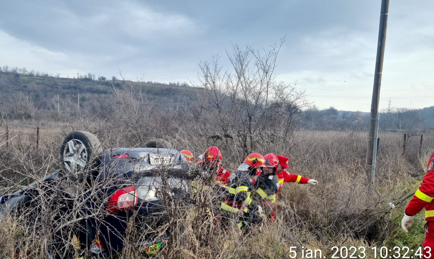 Potrivit ISU Mehedinți, în accident a fost implicat un singur autoturism care a părăsit partea carosabilă și s-a răsturnat.