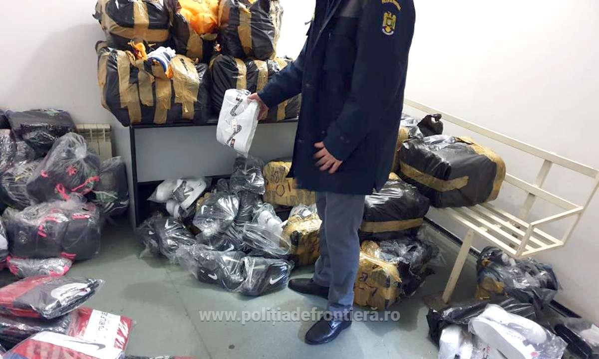 Peste 2.900 de articole textile, parfumuri si încălţăminte, considerate a fi contrafăcute, pe care doi cetățeni turci au încercat să le introducă ilegal în țară, au fost descoperite de către polițiștii de frontieră de la Giurgiu.