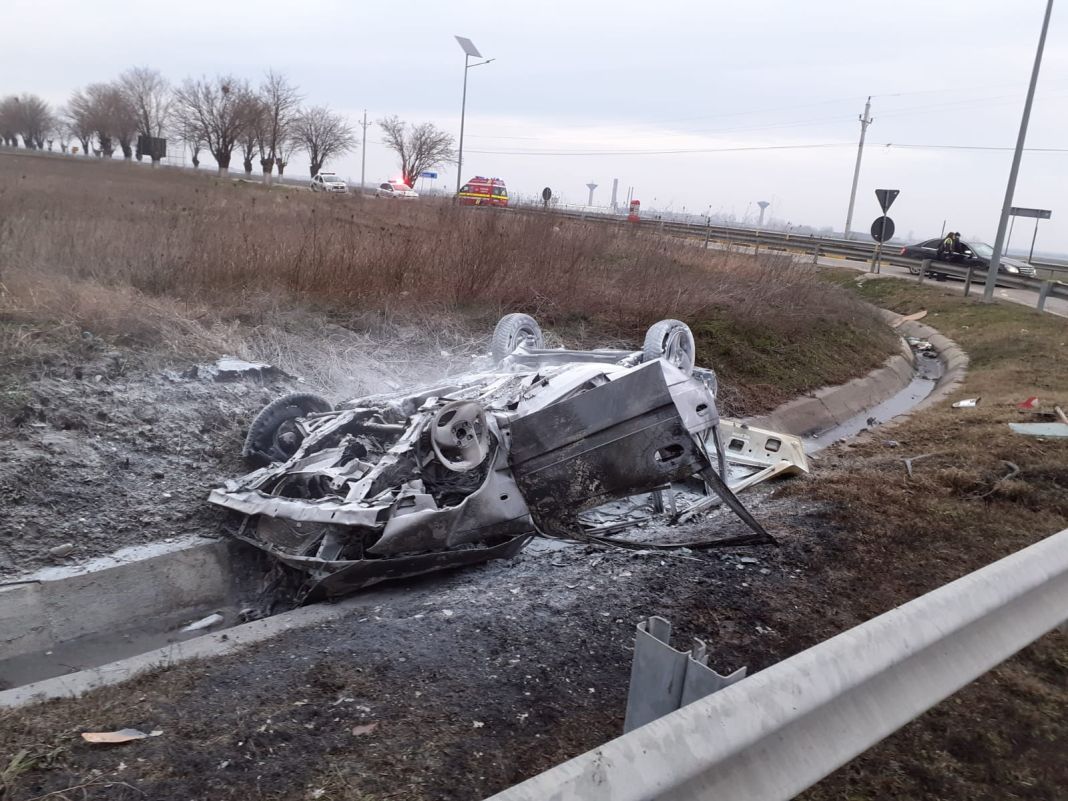 O maşină a fost implicată într-un accident rutier pe centura oraşului Caracal şi apoi a luat foc, iar şoferul a fost găsit de pompierii din Olt decedat şi cu arsuri pe tot corpul.