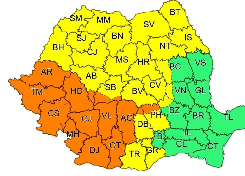 Județele afectate sunt Arad, Timișoara, Caraș Severin, Mehedinți, Dolj, Olt, Argeș, Dâmbovița, Prahova, Vâlcea, Sibiu, Gorj, Alba și Hunedoara.