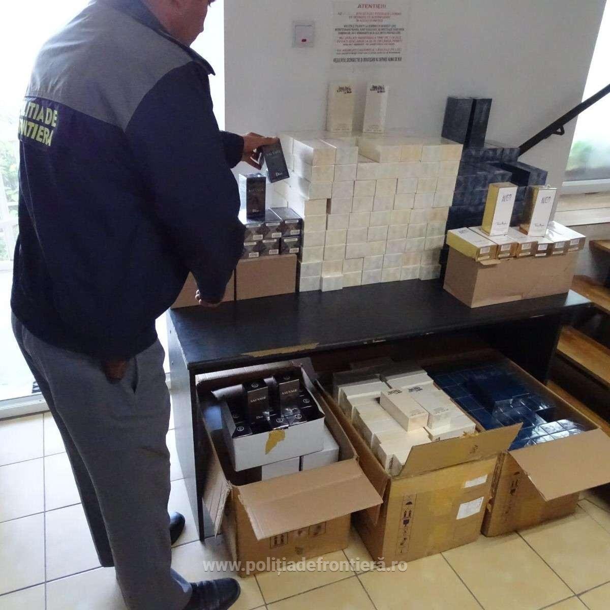 Cu ocazia controlului efectuat de către poliţiştii de frontieră, în compartimentul marfă au fost descoperite nouă colete care conțineau cantitatea totală de 1.300 parfumuri care purtau însemnele unor mărci cunoscute, susceptibile a fi contrafăcute.