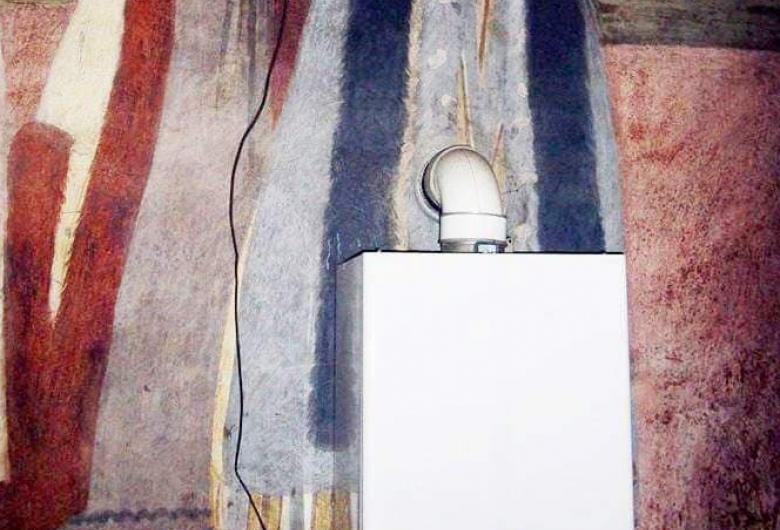 Parohia a decis să monteze o centrală termică pentru ca oamenilor să nu le fie frig la slujbe. Doar că centrala a fost montată pe o pictură care aparține chiar ctitorilor bisericii.