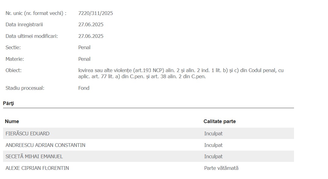 Eduard Fierăscu a fost condamnat penal de Judecătoria Slatina pentru agresiuni comise în ziua votului din 24 noiembrie 2024, când a lovit violent doi bărbați: Sabin Bratu, directorul Serviciului Județean de Pază Olt, și un polițist de frontieră aflat în timpul liber, Cătălin Temereancă, care încercase să aplaneze conflictul.