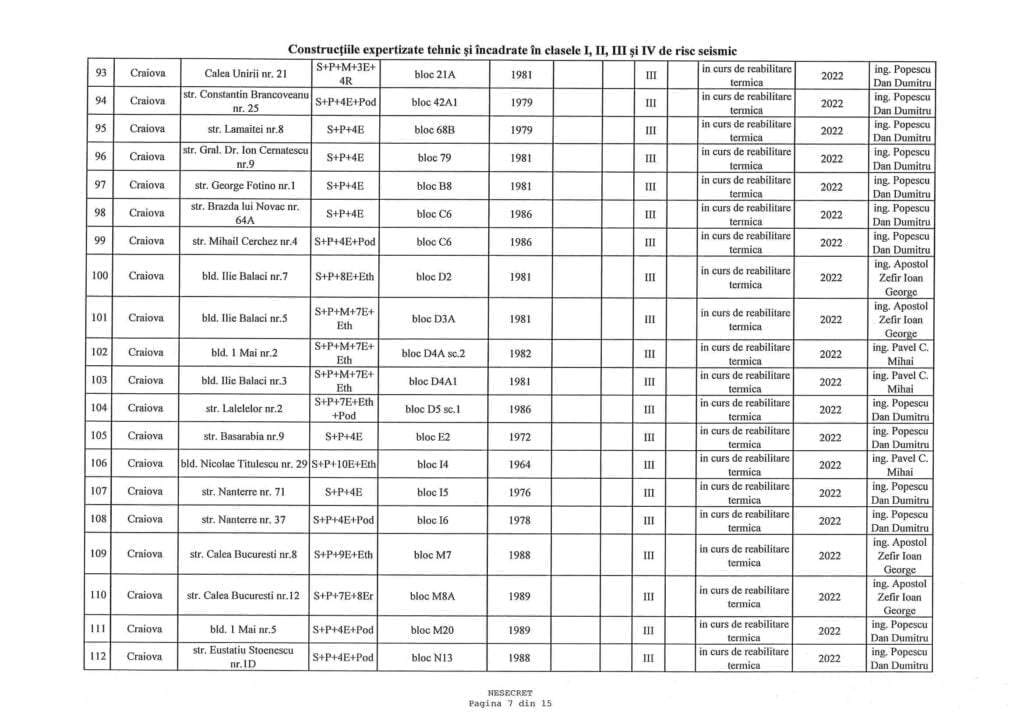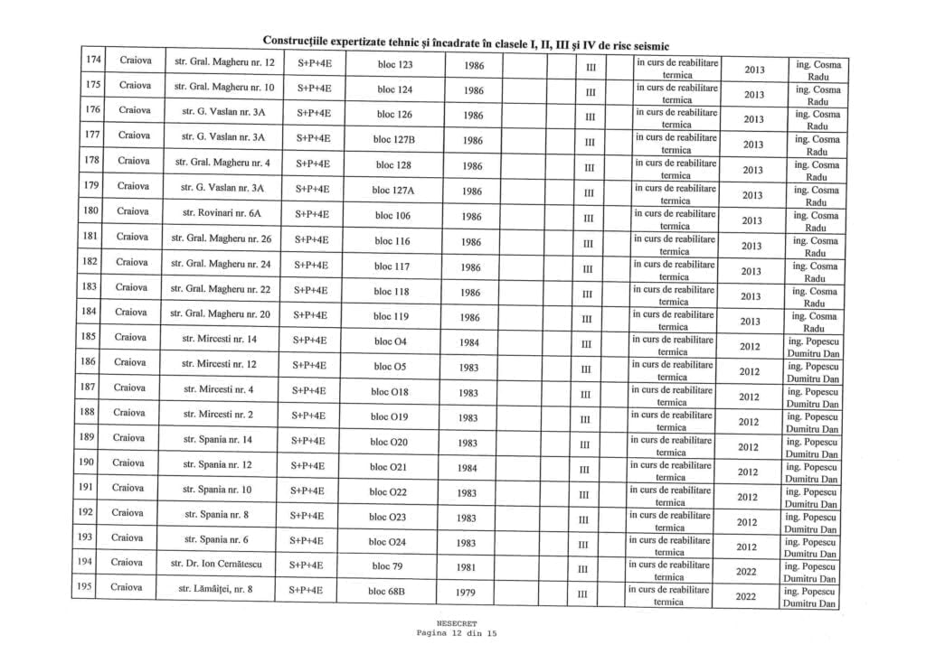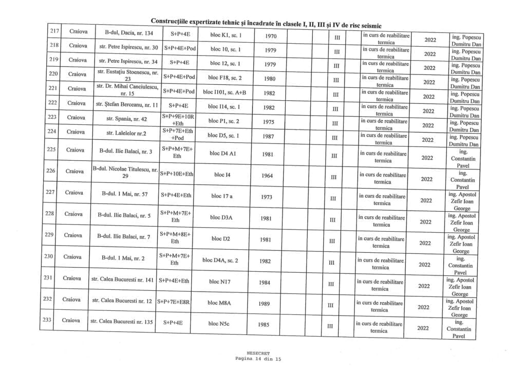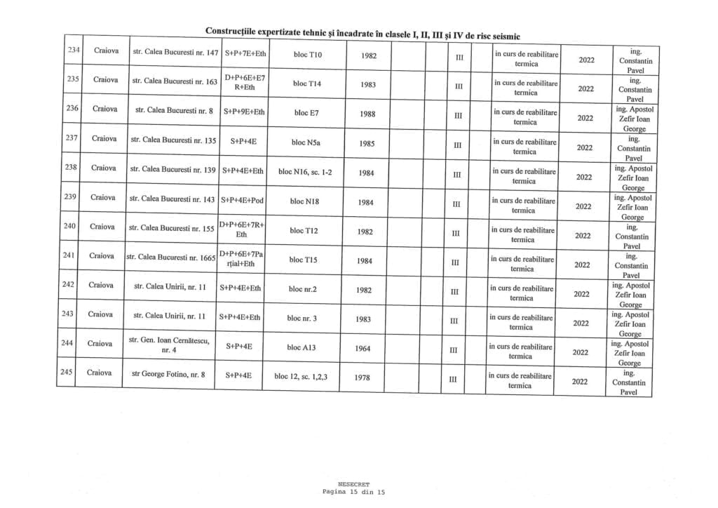 Cele mai multe clădiri din Craiova care au o categorie de risc seismic sunt blocuri de locuinţe, sau alte imobile private.