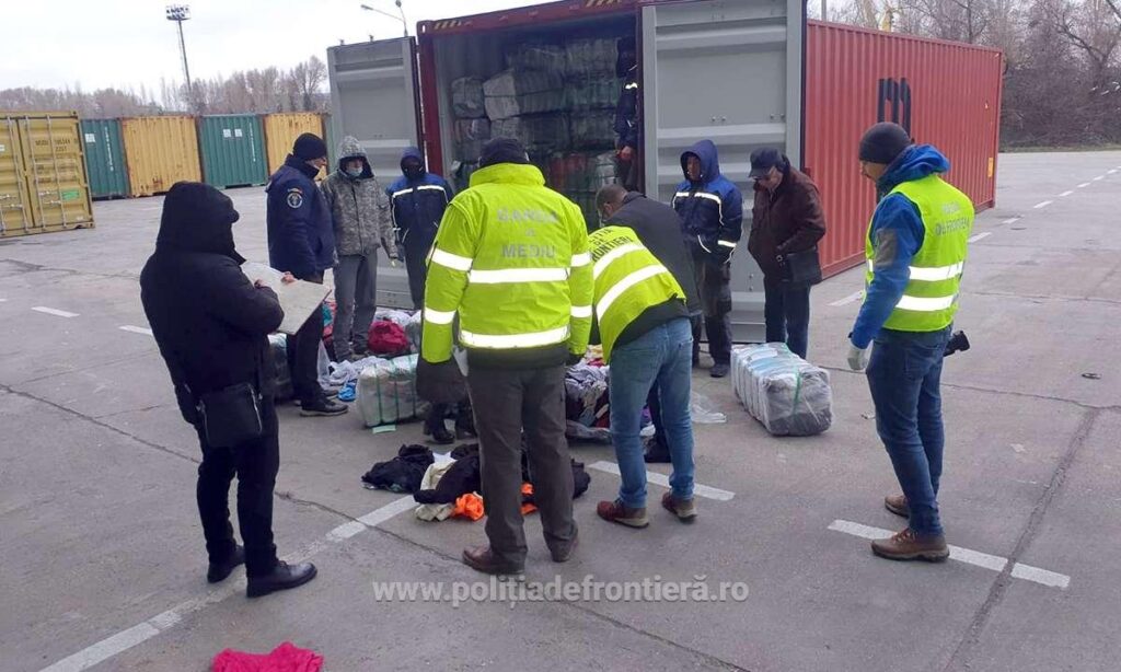 În containere erau încărcate 76.789 kg îmbrăcăminte cu un grad avansat de uzură, nefiind supusă procesului de curățare, dezinfecție şi dezinsecție.