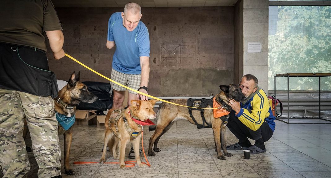 Nici nouă nu ne poate spune nu. După interviu, înregistrăm și un videoclip. Kateryna le dă animalelor comanda să se ridice, dar între fotografii, acestea se așază la picioarele ei, aparent aproape complet epuizate. Facem ultimele fotografii, cu câinii care părăsesc clădirea și se îndreaptă către un lac din pădure, unde nu vor mai fi polițiști, terapeuți și mini-centru de sprijin emoțional. Pentru o vreme, se vor zbengui în apă și vor fi doar câini.
