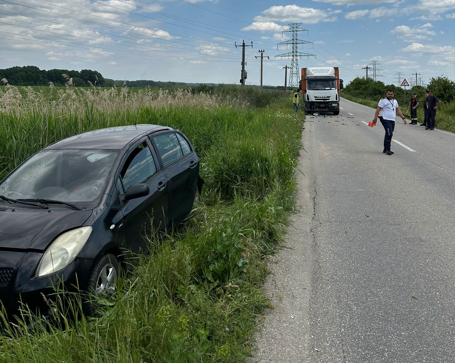 Polițiștii sunt prezenți la fața locului pentru a stabili împrejurările producerii evenimentului.
