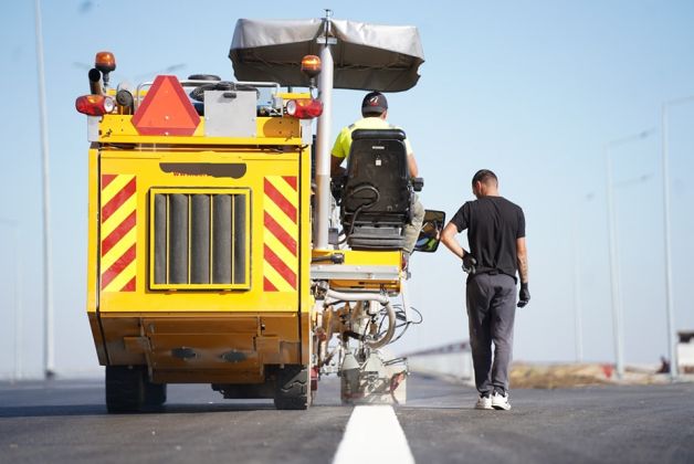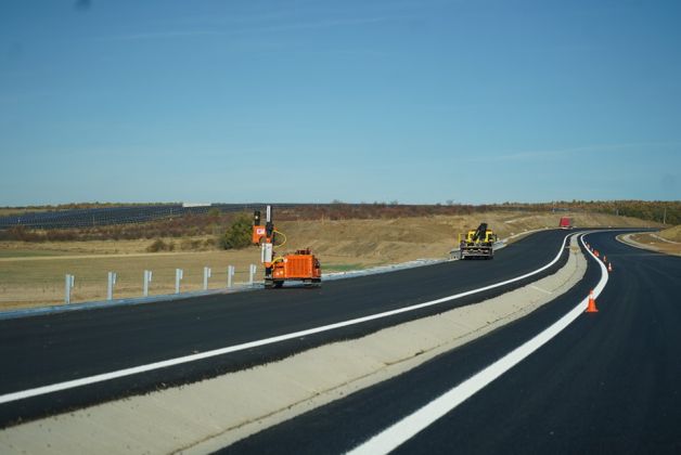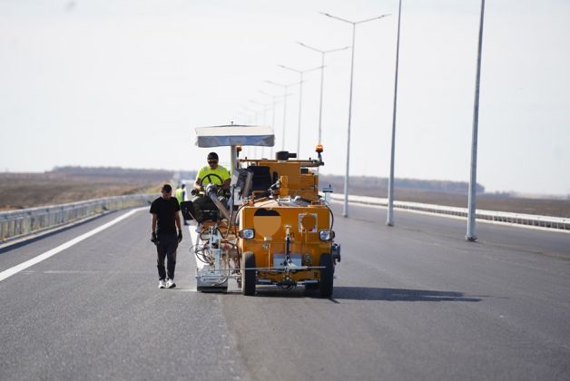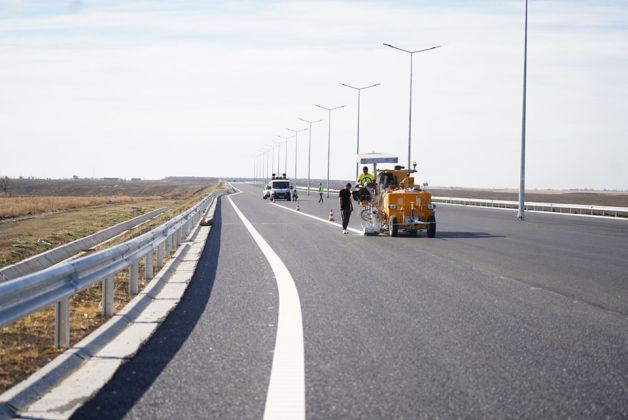 Constructorul Tronsonului 3 al Drumului Expres Craiova-Piteşti a început, de miercuri, aplicarea marcajelor rutiere.