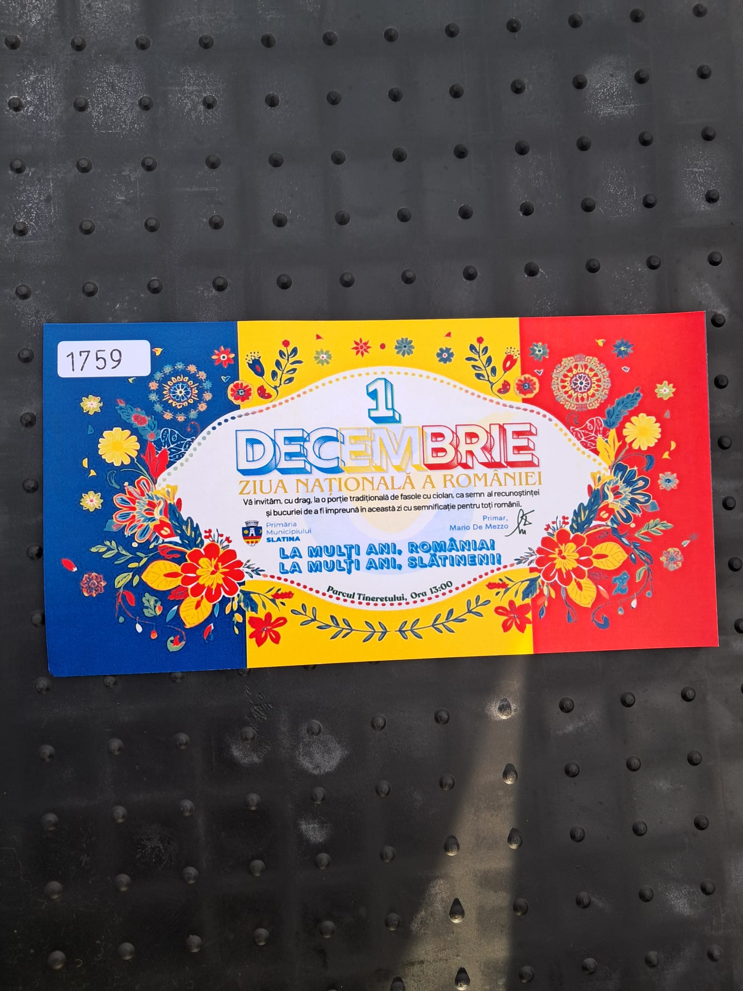 Actualul primar al Slatinei, Mario De Mezzo, profită de sărbătoarea de Ziua Naţională pentru a strânge o nouă bază cu datele slătinenilor. Din această săptămână, pe platoul de la Fântâna Speranţei a fost amplasat un cort cu inscripţiile electorale ale ediului unde cei care vor să primească fasole cu ciolan, la festivităţile de 1 Decembrie, trebuie să-şi lase numele şi numărul de telefon. La schimb, aceştia primesc o bucată de hârtie, denumită „voucher”, pe care trebuie să o prezinte înainte de a trece prin faţa oalei cu bucate. Este pentru prima oară în istoria recentă când se întâmplă aşa ceva.