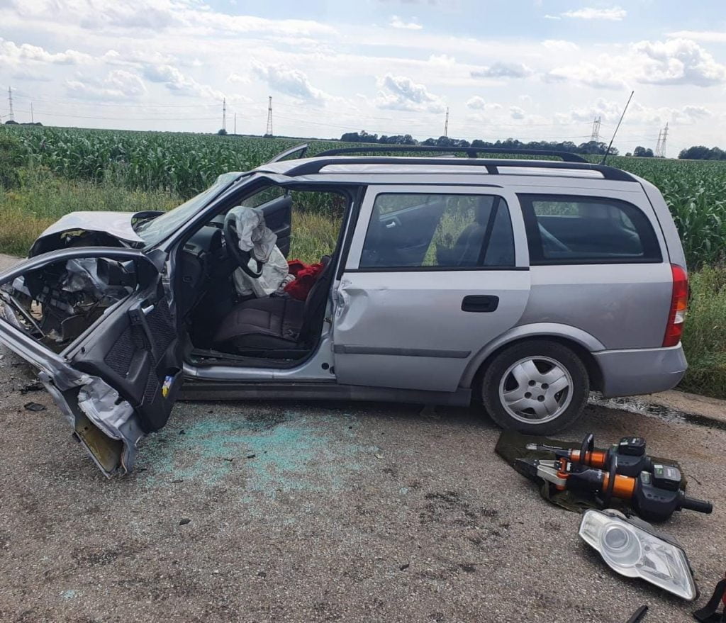 Una dintre cele trei persoane care se aflau în autoturism a rămas încarcerată în urma evenimentului.