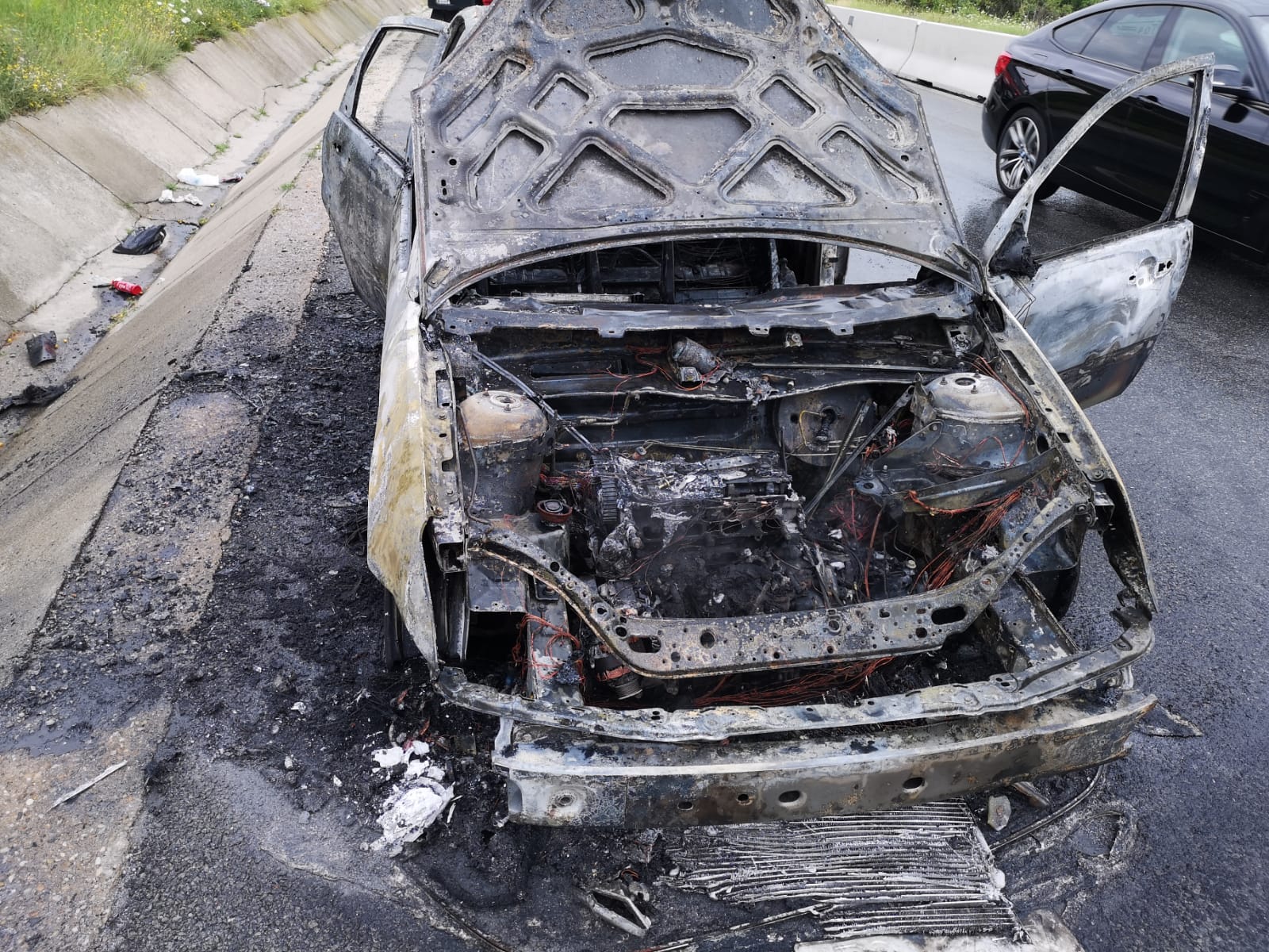 Pompierii au lichidat incendiul în scurt timp, dar autoturismul a ars în totalitate.