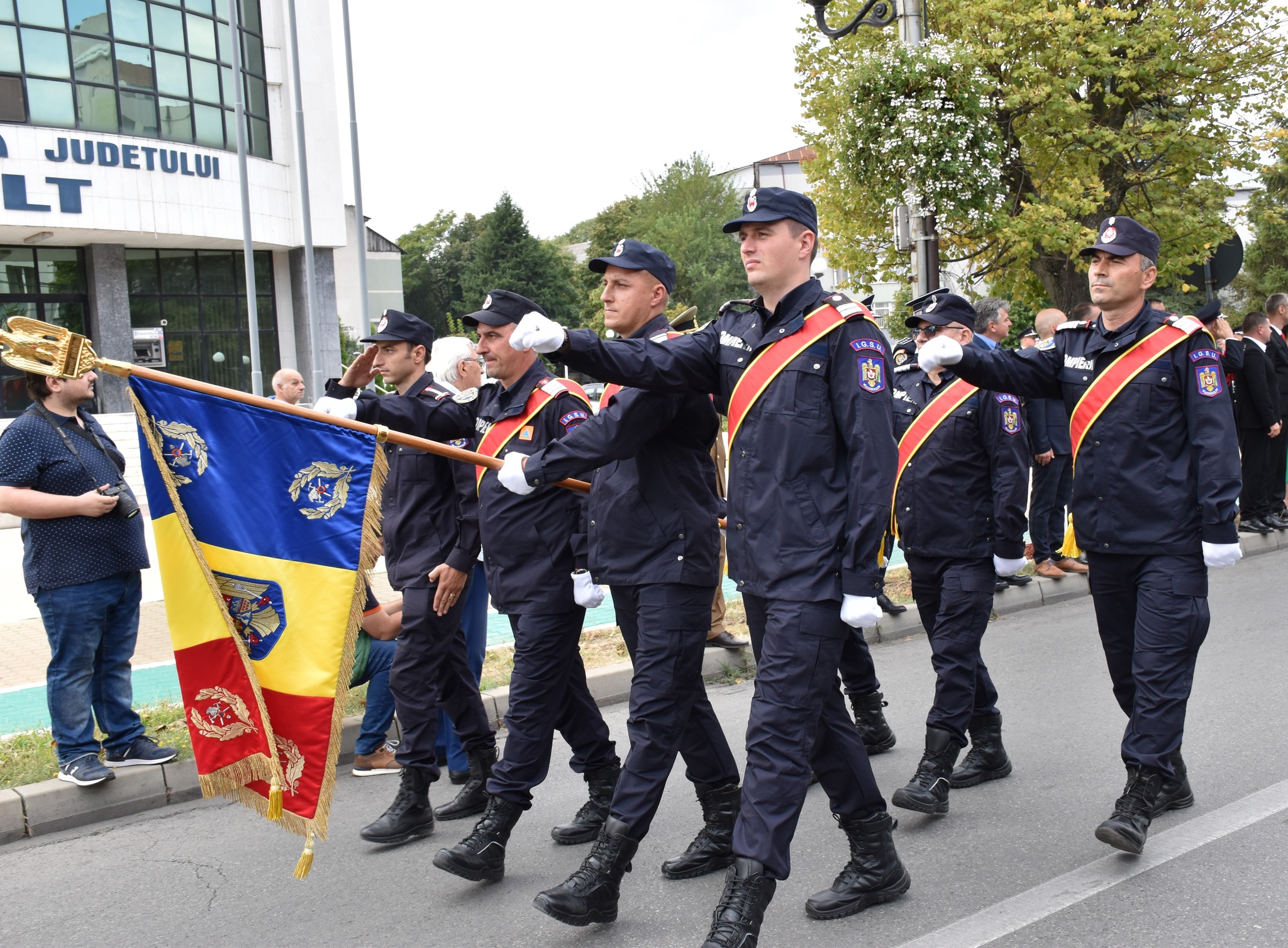 Ceremonialul militar s-a încheiat cu defilarea gărzii de onoare și defilarea autospecialelor de pompieri, pe acordurile Fanfarei Lyra Band.